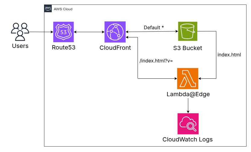 - Variante 3: AWS CloudFront mit Lambda@Edge, wo ich den Request/Response modifziere - ich "injiziere" meinen Code über eine Lambda-Function in den HTML-Body ein. Diese Variante ist sehr einfach, da ich die HTML-Website lokal erstellen kann und einfach über CloudFront verteile. Der dynamische Part wird über eine eigene Lambda-Function geregelt, diese muss ich auch selten ändern (die Credentials stehen fest) und der Code ist dafür auch sehr simpel.